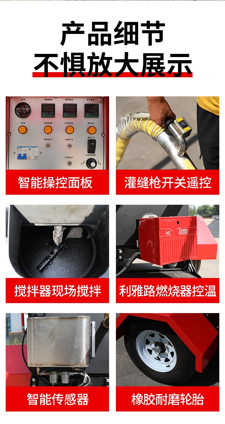 主要功能:通過(guò)一根單獨(dú)的加熱軟管將加熱融化后的橡膠瀝青基密封材料連續(xù)注入清理過(guò)的縫隙完成裂縫病害密封處理。輔助灌縫設(shè)備完成裂縫密封的設(shè)備有(開(kāi)槽機(jī)、熱風(fēng)槍?zhuān)?,密封材料主要是瀝青基橡膠密封膠。
